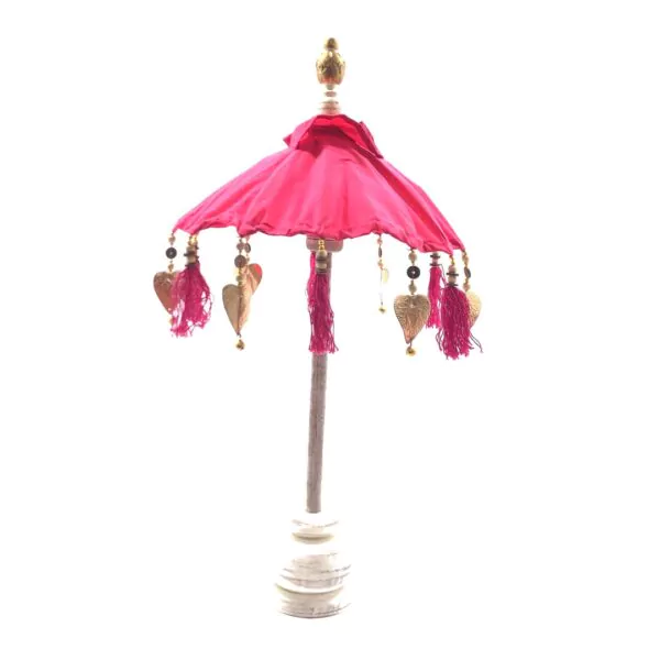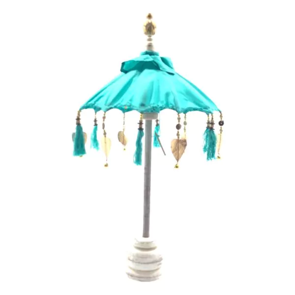 - Stijl: Versierd met kwastjes en kralen, voegt deze parasol een vleugje Balinese elegantie toe aan elke tafelsetting.