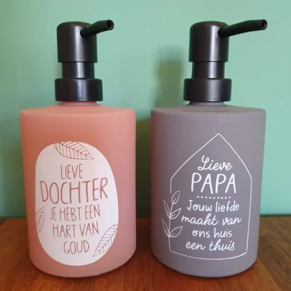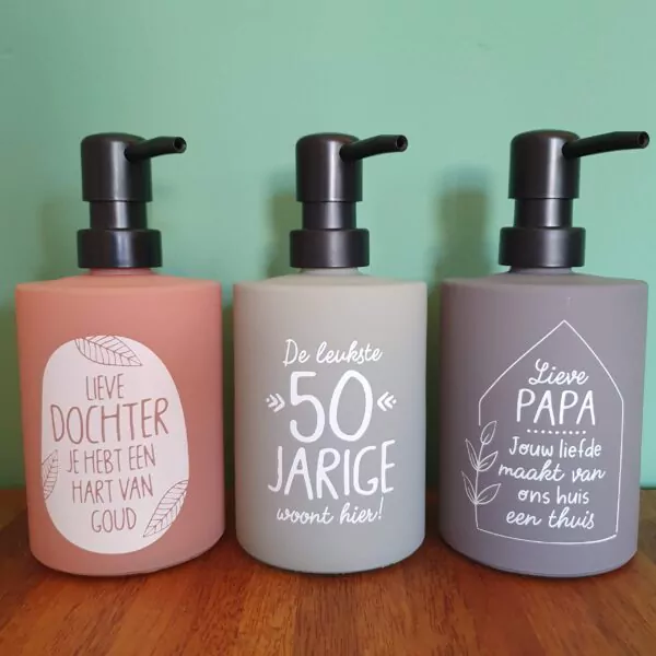 Het bedankt zeeppompje heeft de tekst: “Bedankt, je bent geweldig”