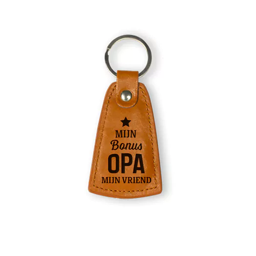 De bonusopa leren sleutelhanger heeft de tekst “Mijn bonusopa, mijn vriend” en is gemaakt van stevig imitatieleer.