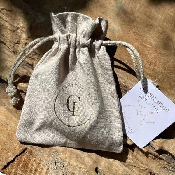 Deze prachtige Boogschutter edelsteenset is het perfecte geschenk voor iedereen geboren tussen 22 november en 21 december. De Boogschutter edelsteenset komt in een eco-friendly zakje met een edelsteen (trommelsteen of palmsteen) en een edelsteen armband.