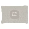 Stoer beige buitenkussen met tekst ‘Hé zon ga je mee stralen?’ en op de achterkant een beige hart.