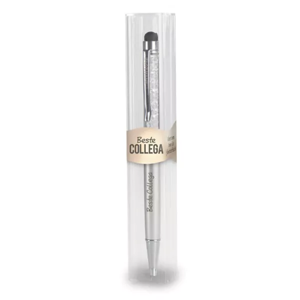 Pennen worden dagelijks gebruikt en zijn daardoor voor iedere gelegenheid leuk om te geven! De Crystal Pen onderscheidt zich door een combinatie van zachte kleuren en crystalvormige steentjes en is daarmee een echte eye catcher. Daarnaast is de achterzijde van de Crystal Pen te gebruiken als stylus. Hierdoor is een smartphone of tablet makkelijker te bedienen en blijft het vrij van vingerafdrukken en krassen.