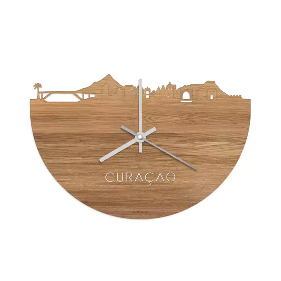 De Curaçao skyline klok is een designklok met de skyline van Curaçao, leverbaar in 4 verschillende houtsoorten. Je herkent ze vast allemaal; de hoogtepunten van deze geliefde plaats: Palmboom, Julianabrug, Christoffelberg, Handelskade, Penha, Pontjesbrug / Koningin Emmabrug, Gouveneurspaleis, Rif Fort en Tafelberg.