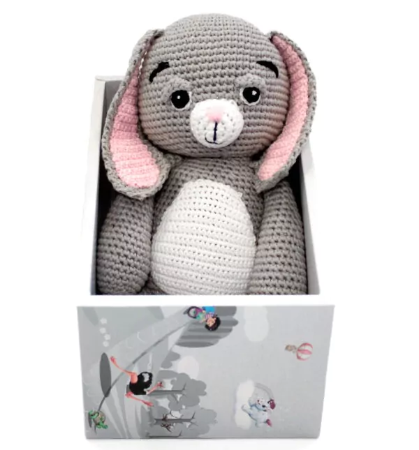 De gehaakt konijntje is een handgebreid katoenen knuffeldier (Amigurumi).