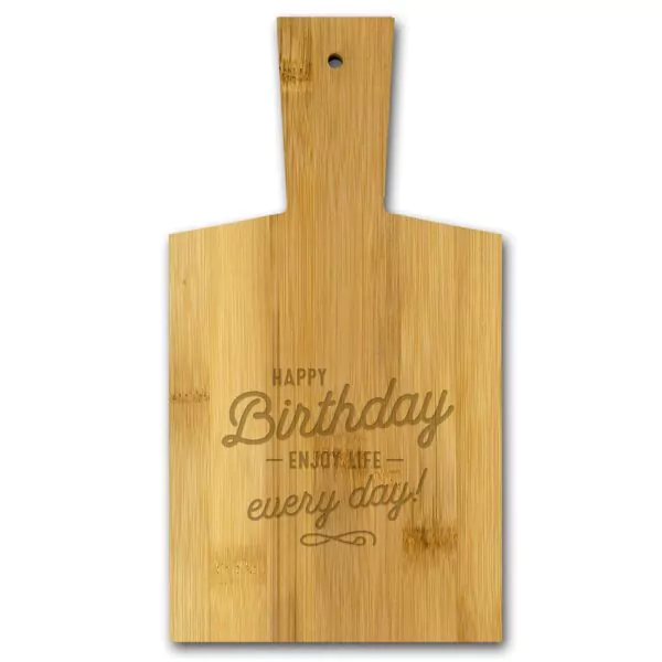 Borrelplankje met de tekst “Happy birthday – enjoy life – every day!”.