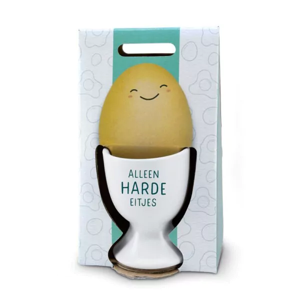 Het harde eitjes eierdopje is een eierdopje met de tekst: “Alleen harde eitjes”.