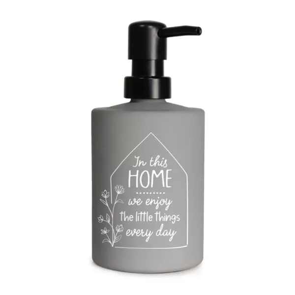 Het in this home zeeppompje heeft de tekst: “In this home we enjoy the little things every day”