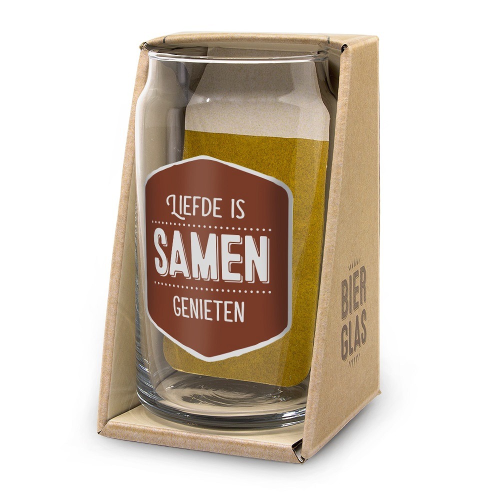 Het Liefde is bierglas is bedrukt met de tekst “Liefde is samen genieten”, wat het een persoonlijk en warm karakter geeft. Dankzij het stevige ontwerp en het feit dat het glas geschikt is voor de vaatwasser, is het niet alleen mooi om te geven, maar ook praktisch in gebruik. Ideaal voor een ontspannen avond op het terras, een barbecue met vrienden of een rustige vrijdagavond op de bank.