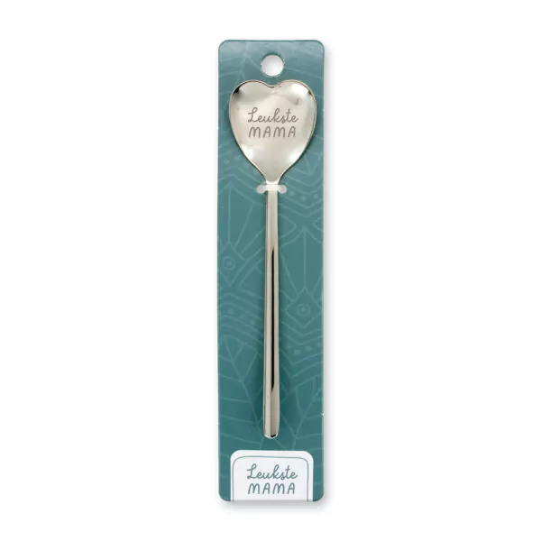 Lepeltje in de vorm van een hart met de tekst “Leukste mama”.