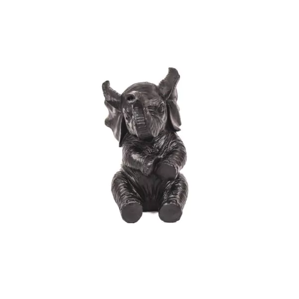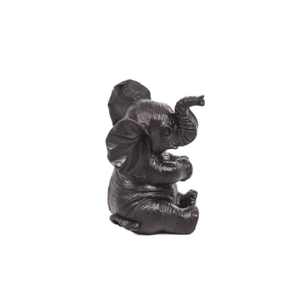 Zwart olifant beeldje van polyresin, 7 x 7 x 11 cm. Een speelse decoratie die een vleugje jungle brengt in elke ruimte.