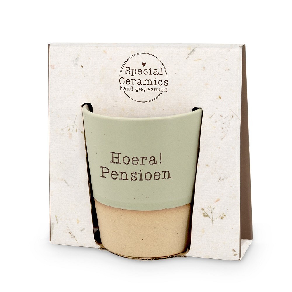 Pensioen keramische beker