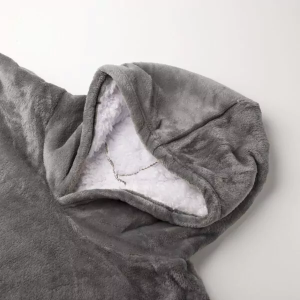 Deze heerlijke hoodie deken Sherry (antraciet) is dé oplossing voor als je op zoek bent naar een lekker warme fleece deken met mouwen en trui in één. Deze zachte snuggle hoodie (knuffeltrui) trek je eenvoudig aan. De Sherry oversized hoodie heeft ook nog eens een grote buidelzak aan de voorkant die superhandig is om kleine voorwerpen in het bewaren zoals de afstandsbediening, je telefoon of een zakdoek.