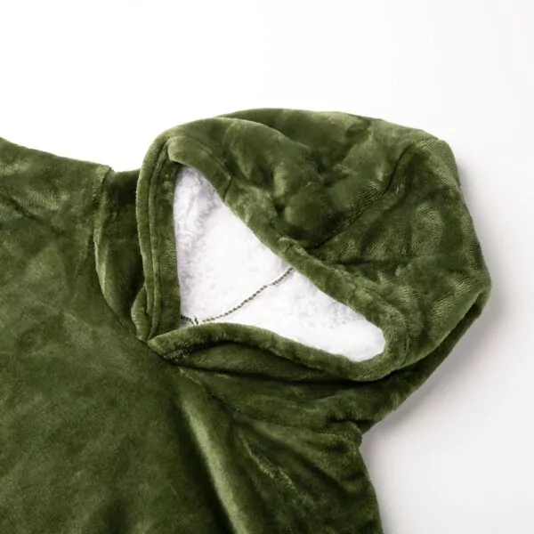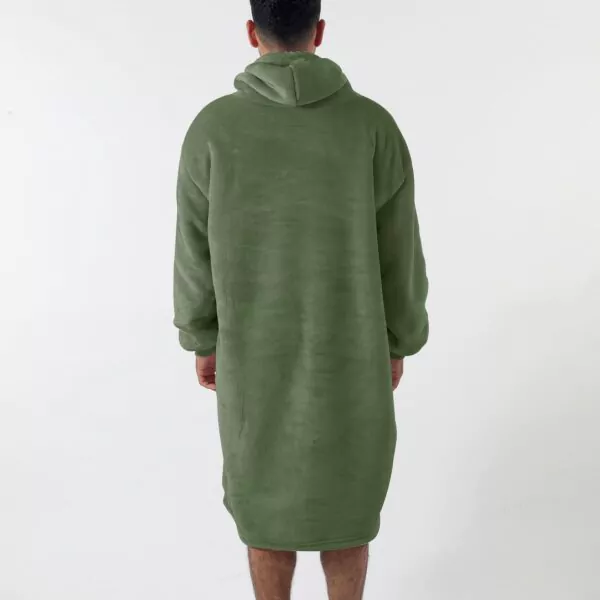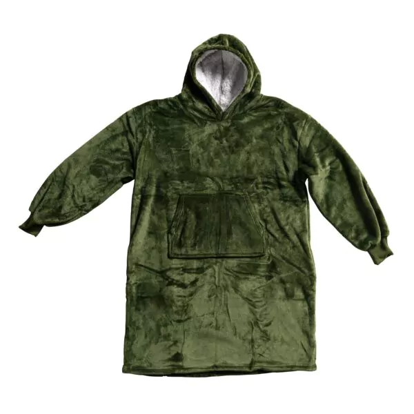 Deze heerlijke hoodie deken Sherry (groen) is dé oplossing voor als je op zoek bent naar een lekker warme fleece deken met mouwen en trui in één. Deze zachte snuggle hoodie (knuffeltrui) trek je eenvoudig aan. De Sherry oversized hoodie heeft ook nog eens een grote buidelzak aan de voorkant die superhandig is om kleine voorwerpen in het bewaren zoals de afstandsbediening, je telefoon of een zakdoek.