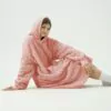 De Sophie oversized hoodie (roze) is dé oplossing voor als je op zoek bent naar een lekker warme fleece deken met mouwen en kabeltrui in één. Deze zachte snuggle hoodie (knuffeltrui) trek je eenvoudig aan. Deze luxe hoodie deken met kabelpatroon heeft ook nog eens een grote buidelzak aan de voorkant die superhandig is om kleine voorwerpen in het bewaren zoals de afstandsbediening, je telefoon of een zakdoek.
