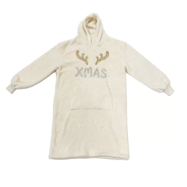 Maak de feestdagen extra gezellig met de X-mas hoodie. Deze heerlijke grote fleece hoodie deken is perfect om lekker warm te blijven op koude winteravonden. Met een lengte van 70×110 cm kun je je helemaal nestelen in deze zachte deken. De hoodie heeft een speelse en feestelijke uitstraling dankzij de rendiergeweien en het “XMAS” opschrift. Of je nu op de bank zit of rondloopt, deze unisex hoodie houdt je comfortabel en stijlvol.